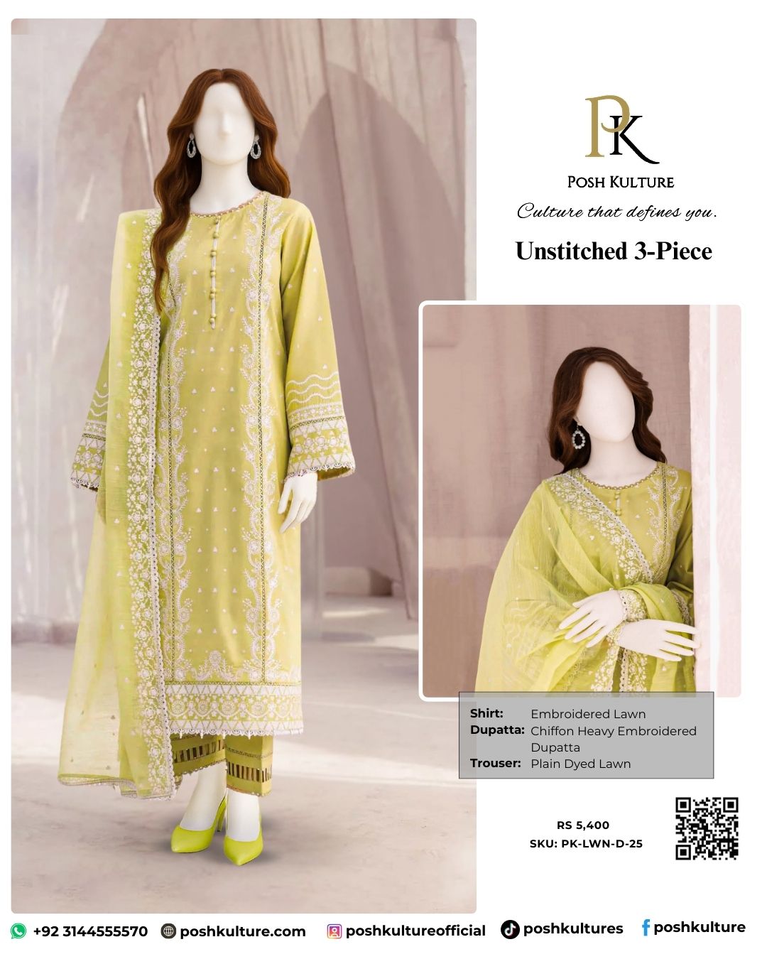 Our 3-piece lawn suit with Bamber Chiffon embroidered dupattas is absolute perfection. Imagine yourself in a luxurious, heavily embroidered shirt, paired with a beautifully crafted dupatta and matching trousers. Sounds like a dream. Make it a reality!