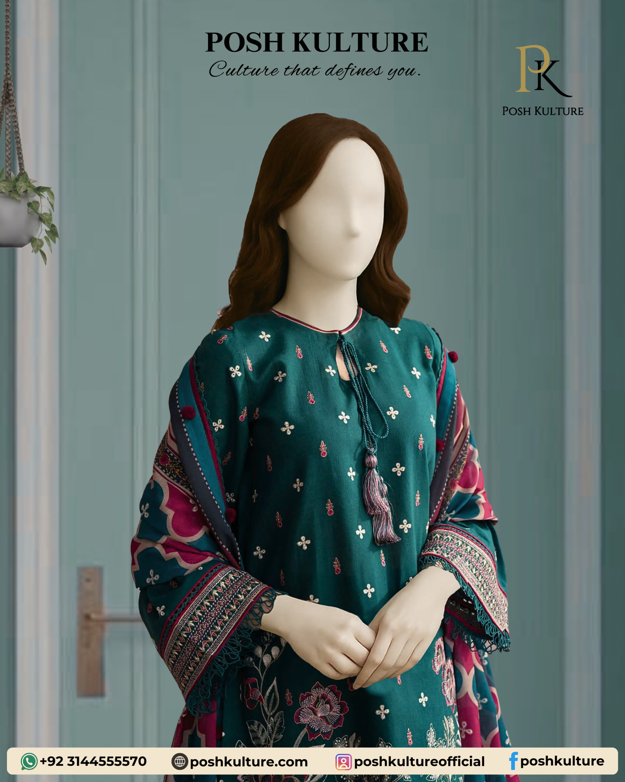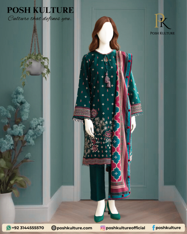 Experience timeless elegance with Posh Kulture’s premium lawn suit featuring a fully heavy embroidered front and sleeves, paired with a plain back and trouser for a balanced look. The ensemble is completed with a luxurious voile dupatta adorned with a stunning diamond print.