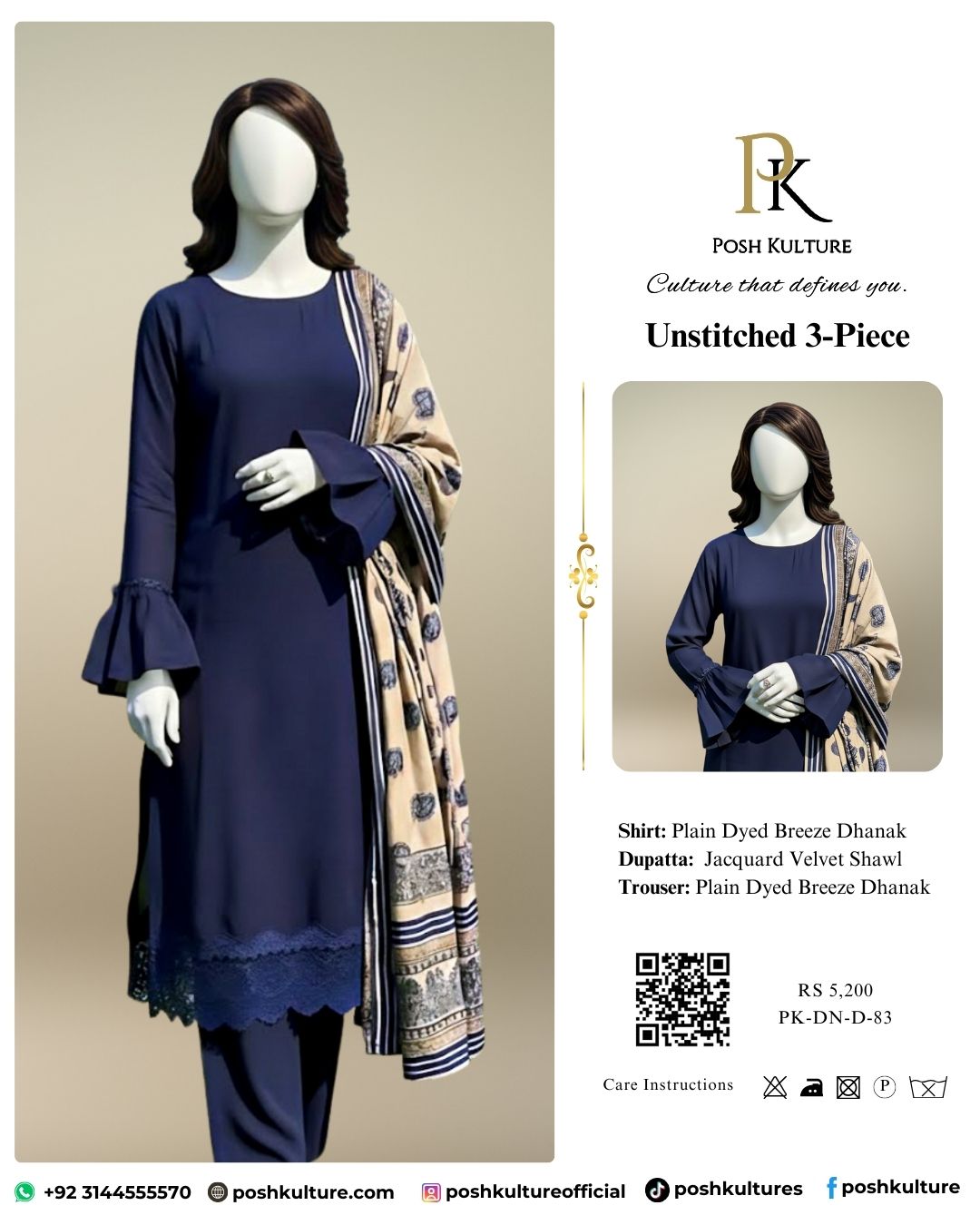 Experience winter elegance with the Blue Winter Breeze Dhanak Suit, part of our Most Hit Exclusive Winter Range. Made from 3PC Dhanak Marina fabric with plain dyed details and a graceful jacquard velvet shawl featuring heavy brosha work, this outfit is ideal for festive evenings or cozy winter gatherings.