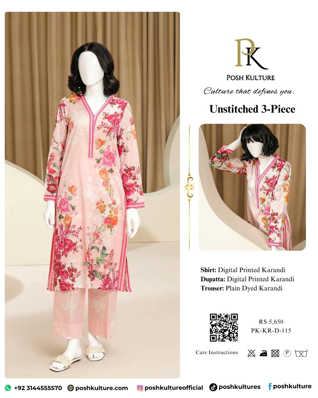 Embrace feminine charm with this stunning blush pink unstitched ensemble from Posh Kulture. The shirt features an intricate digital print of lush florals in vibrant pinks, reds, and soft oranges, set against a delicate base. Paired with matching printed trousers, this is a must-have for those who love romance and elegance.