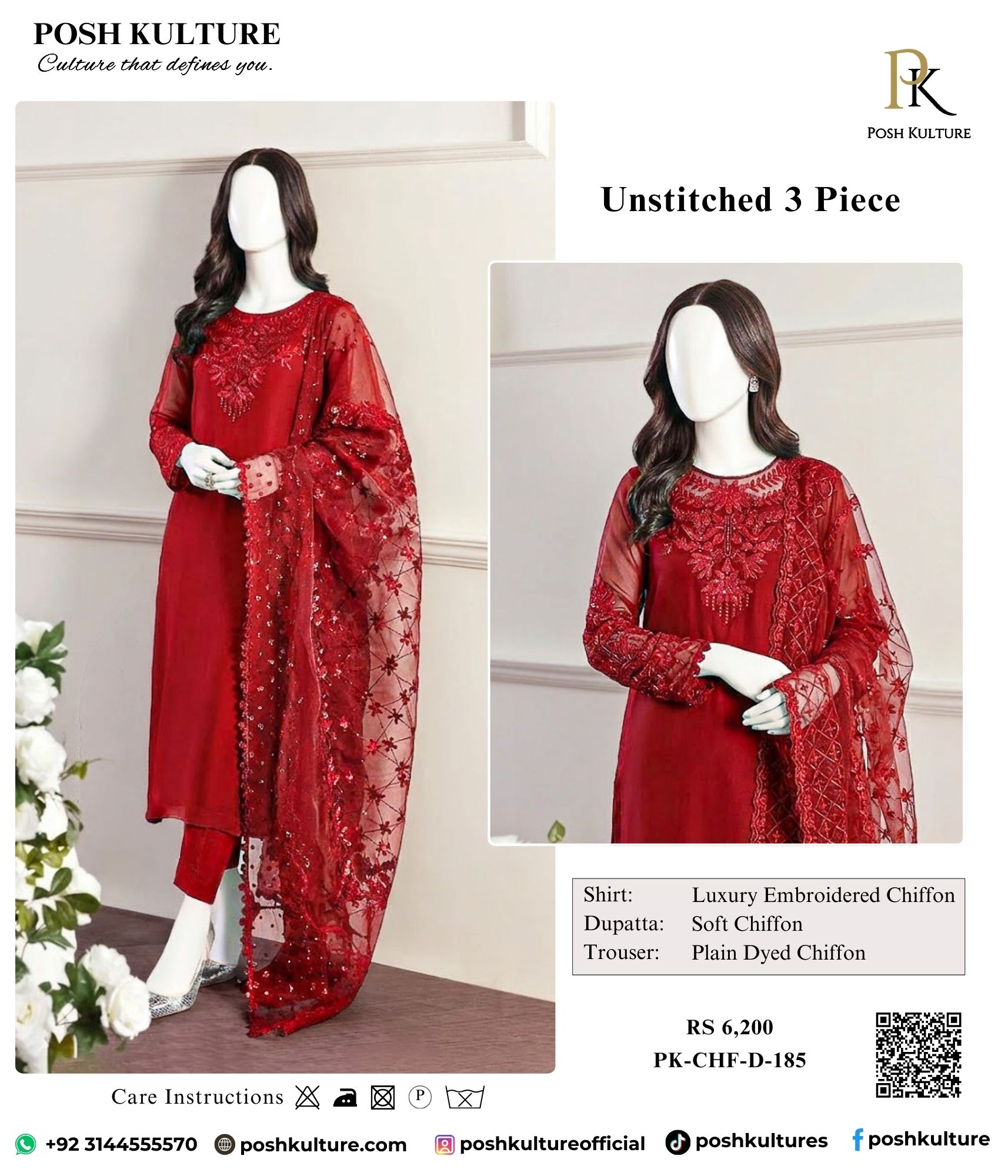 Crimson Red Luxury Embroidered Chiffon Unstitched Suit