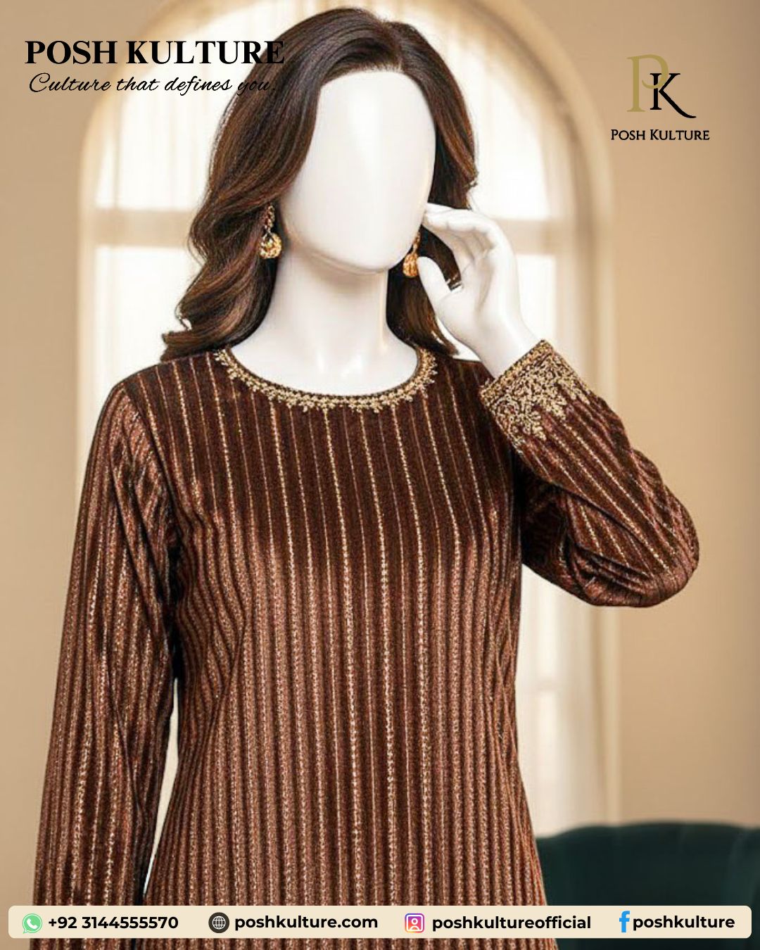 Elevate your festive look! Discover the luxurious Posh Kulture Chocolate Brown Chamki Velvet Collection!
