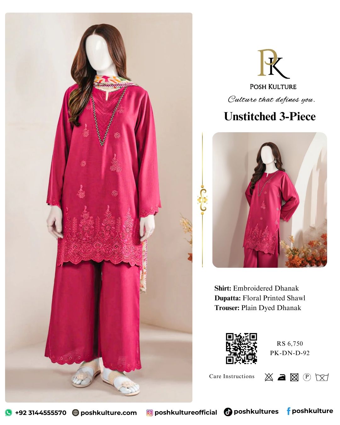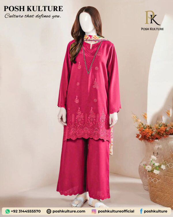 Tags: Embroidered Daman, Heavy Chicken Kari, Luxury Winter Suit, Premium Printed Shawl, Raspberry Pink Dhanak
