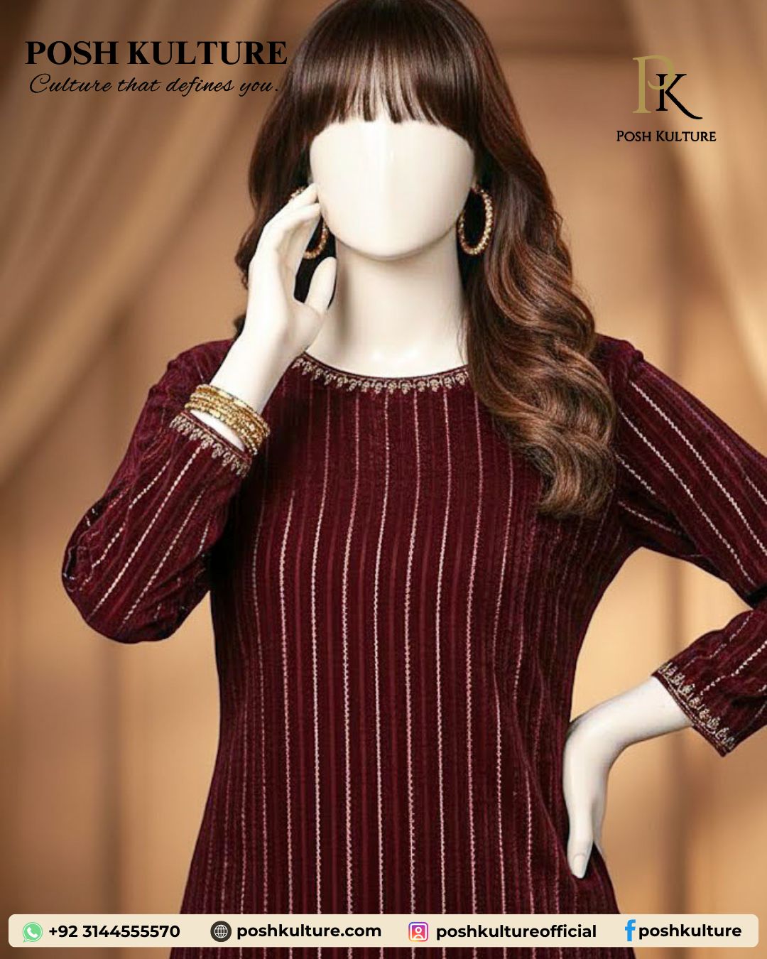Introducing the trending Posh Kulture 2PC Collection in a deep, rich Maroon Chamki Velvet fabric!