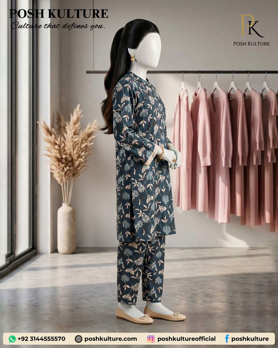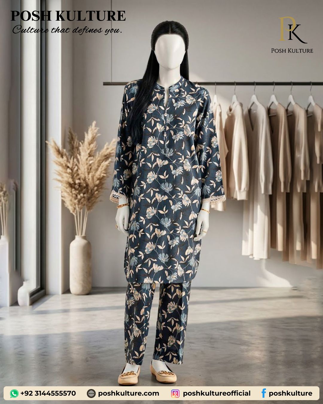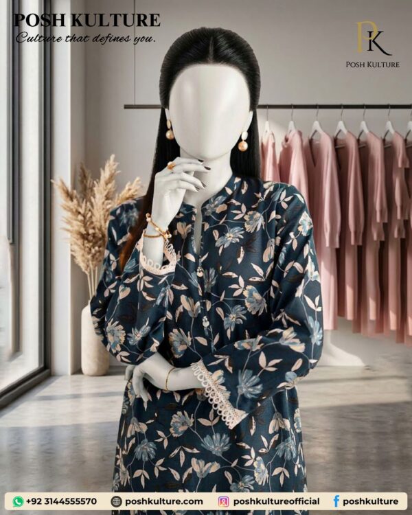 Elevate your summer wardrobe with this sophisticated midnight blue co-ords set. Crafted from premium breathable lawn with a generous 3.25-meter wide-width cut, this matching set offers a seamless blend of modern tailoring and classic comfort. Featuring a delicate allover floral print, it’s designed for the contemporary woman looking for an effortless yet polished look that stays fresh all day.