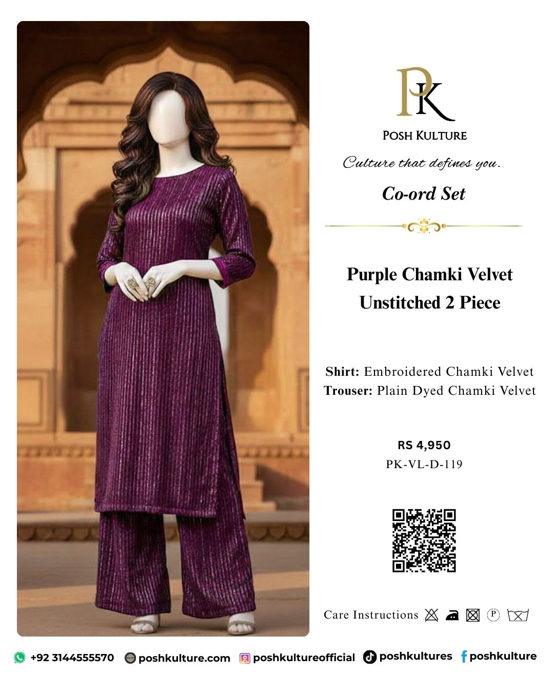 Introducing the trending Posh Kulture 2PC Collection in a rich, captivating Purple Chamki Velvet fabric!