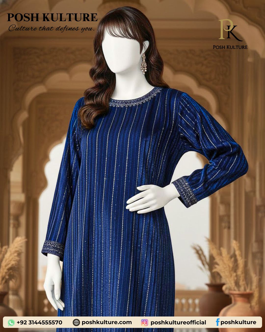 Define your elegance with the Posh Kulture Navy Chamki Velvet Collection!