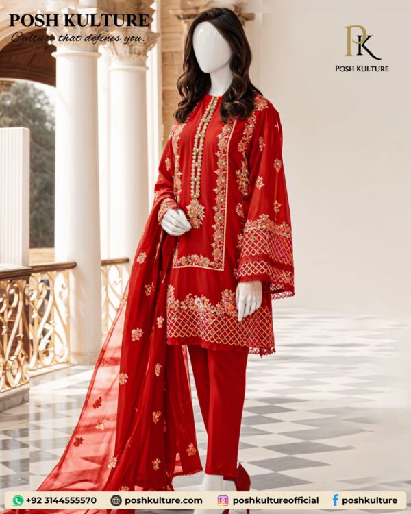 Tags: Deep Red Dhanak, Heavy Winter Embroidery, Luxury Dhanak Shawl, Monochromatic Suit, Regal Ethnic Wear