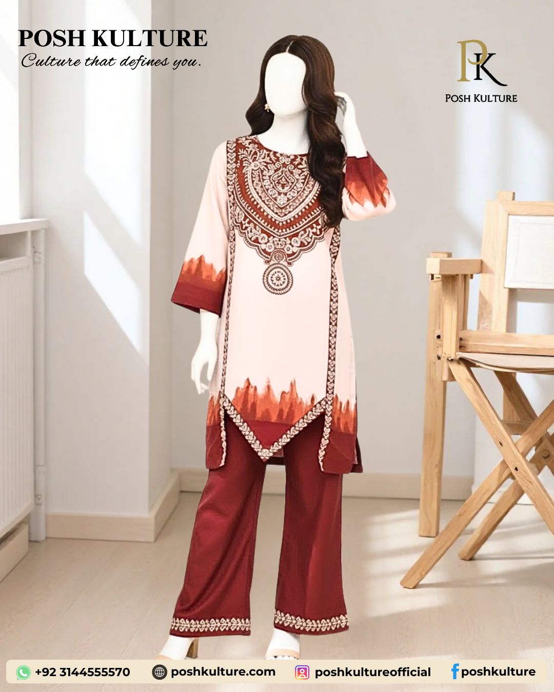 Tags: Digital Print, Maroon Outfit, posh kulture, Shamooz Silk