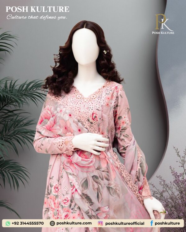 Experience luxury with this 3-piece premium-quality dhanak suit. Featuring a beautiful digital printed dhanak shirt adorned with a vibrant floral design. This unstitched ensemble is completed with a plain dyed trouser and a matching luxury digital printed Dhanak shawl. Perfect for elegant seasonal wear.