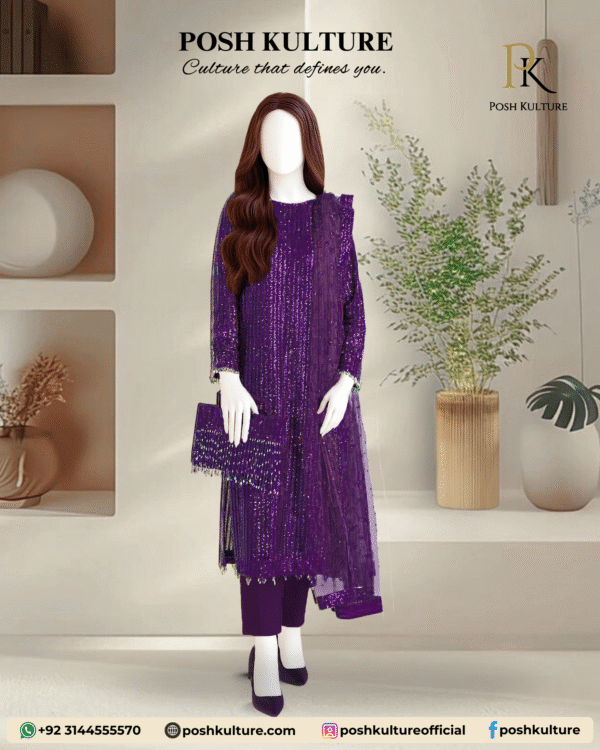 Adorn yourself with Posh Kulture’s latest chiffon masterpiece! Our regal collection boasts beautiful embroidery, premium fabrics, and intricate details.