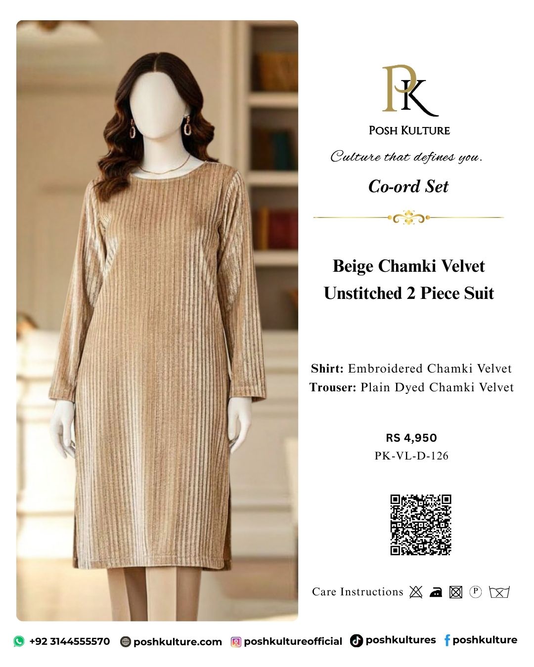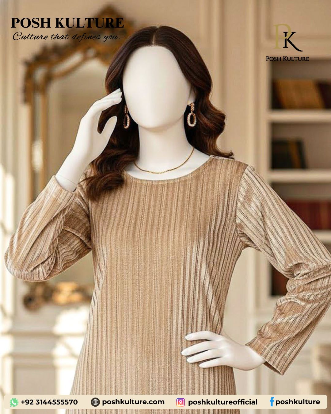 Define your elegance with the Posh Kulture Golden Beige Chamki Velvet Collection!