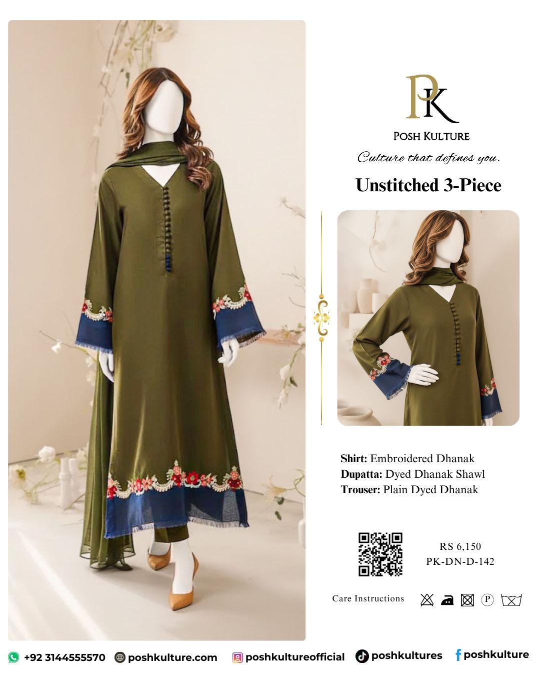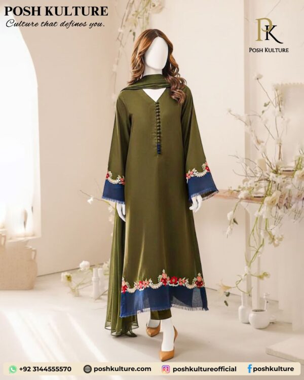 Tags: Dhanak Suit, Navy Floral Cuff, Olive Green, Premium Shawl, Winter 2025