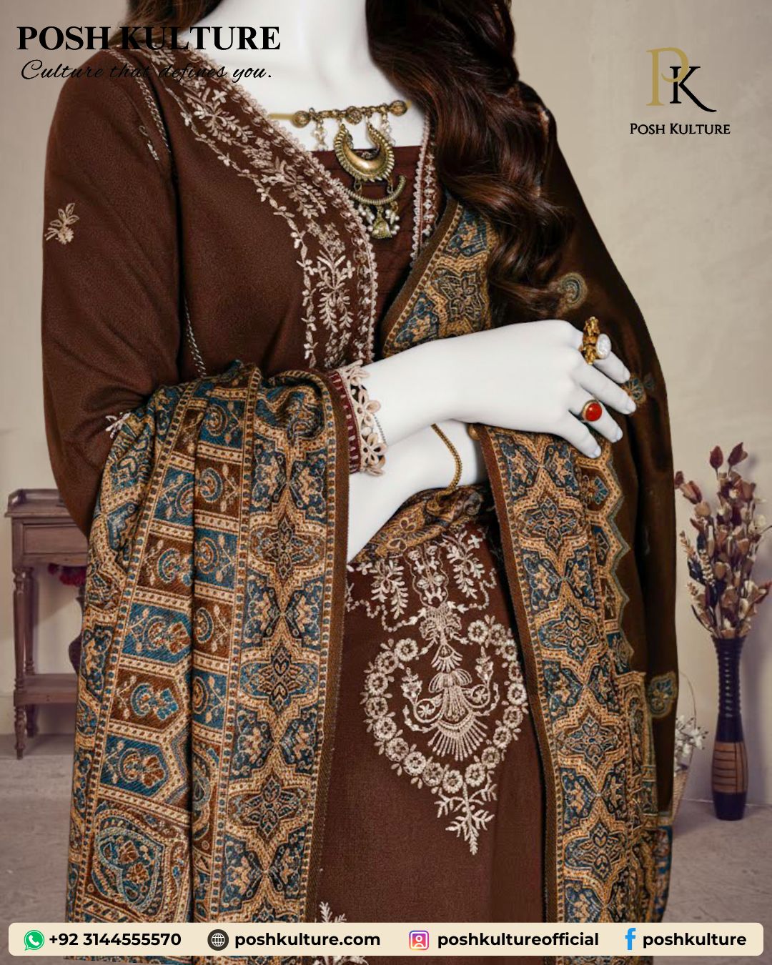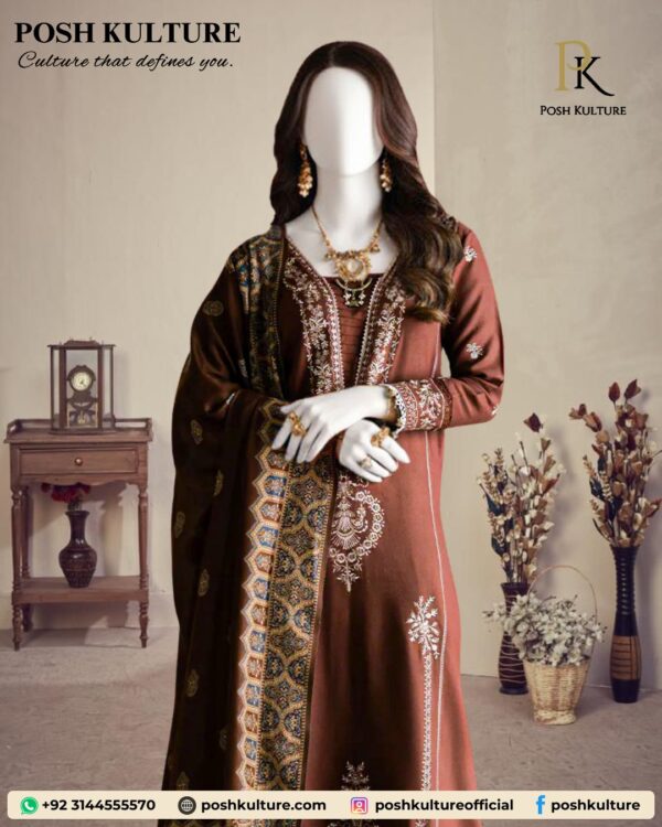 Step into elegance with our Winter Opulence Dhanak Suit from the 2025 Winter Collection. Featuring a full heavily embroidered shirt, embroidered sleeves, daman with ornate embroidered patch, plain trouser and back, and a premium soft wool printed shawl, this ensemble is perfect for festive occasions and formal winter gatherings.